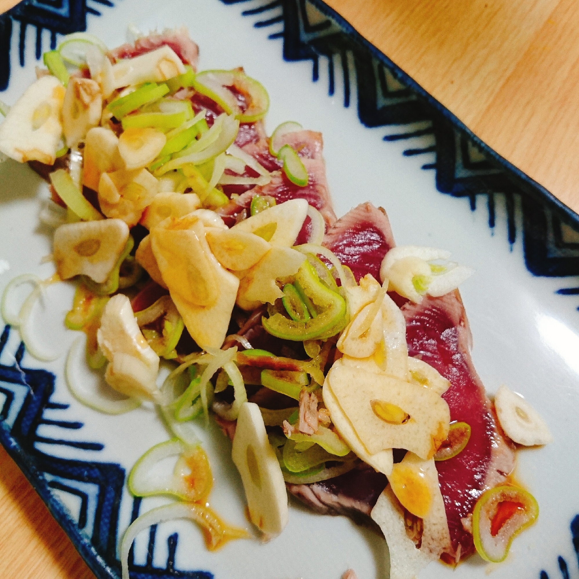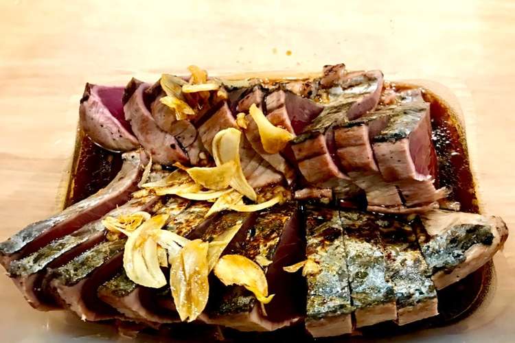 鰹のたたきのニンニク醤油漬け レシピ 作り方 By あゆみくろん クックパッド 簡単おいしいみんなのレシピが368万品